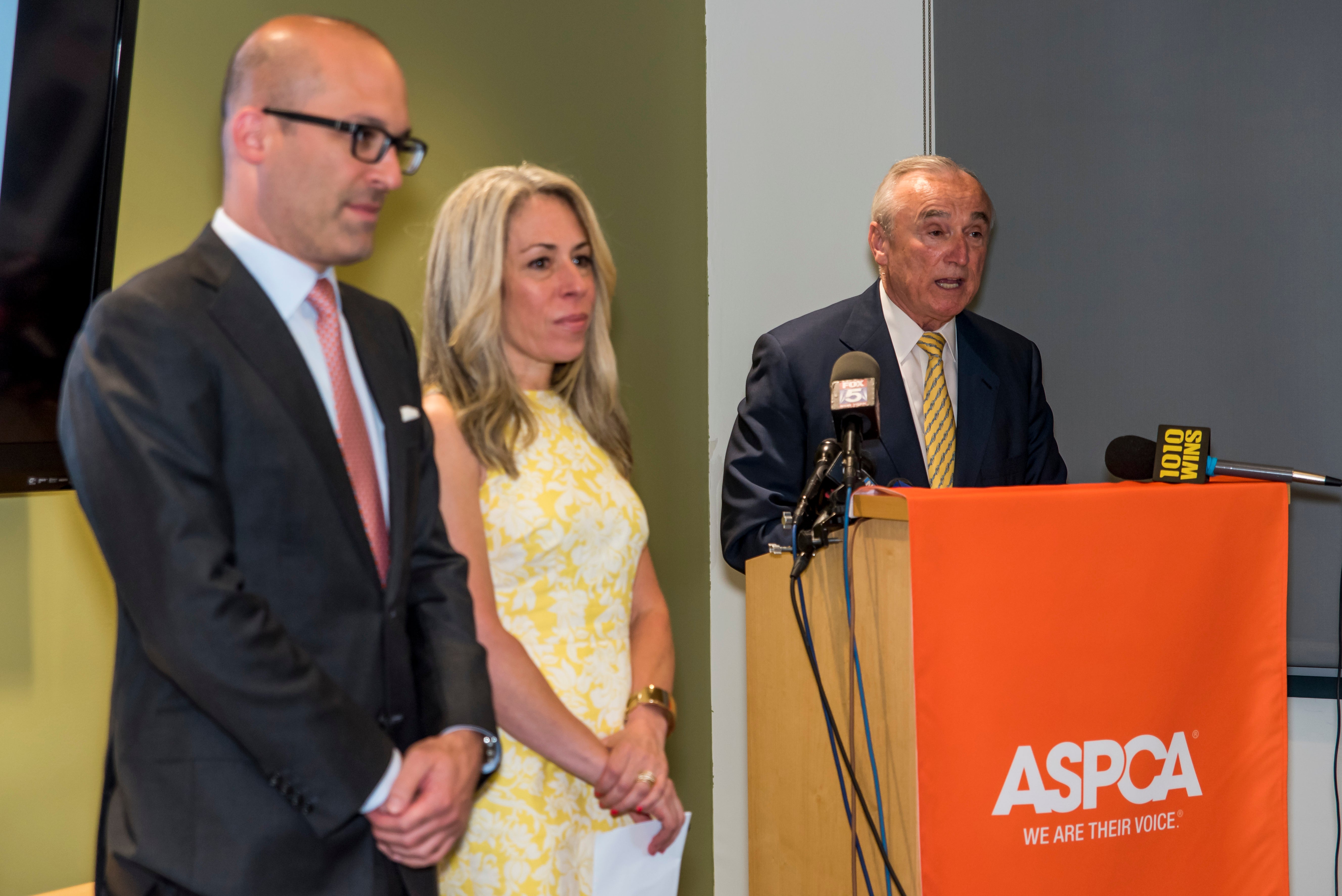 (l-r) Matt Bershadker, President & CEO, ASPCA; Susan L. Birnbaum, President & CEO, NYC Police Foundation; and William J. Bratton, Commissioner, NYPD.