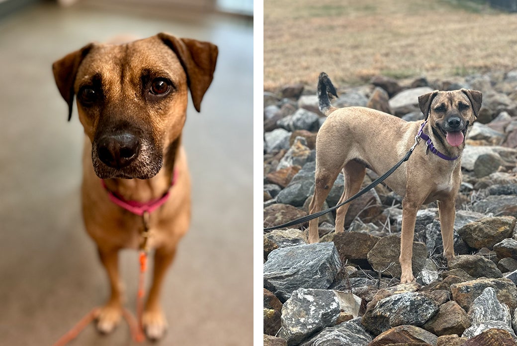 At 39 pounds, Cereal is the perfect fun-size pup for a home that loves both adventure and snuggles. This crunchy-on-confidence, sweet-at-heart pup has a curious spirit and a love for exploring. She loves exploring the world nose-first, whether it’s a quiet neighborhood stroll or a wooded trail, sniffing out new scents and maybe spotting a squirrel for extra excitement.