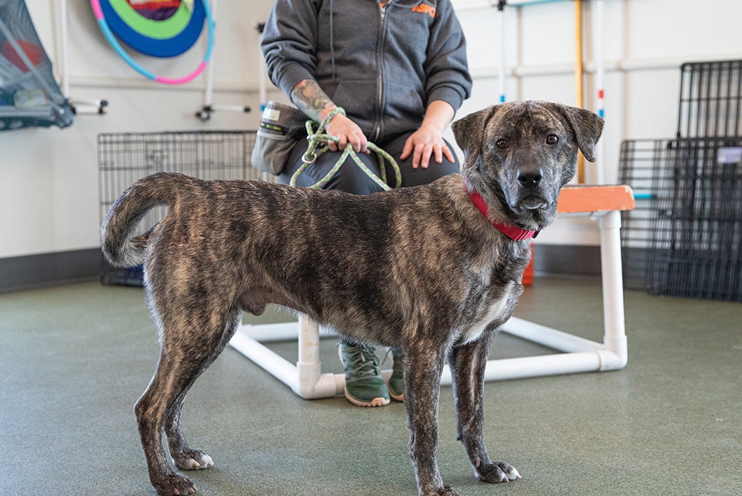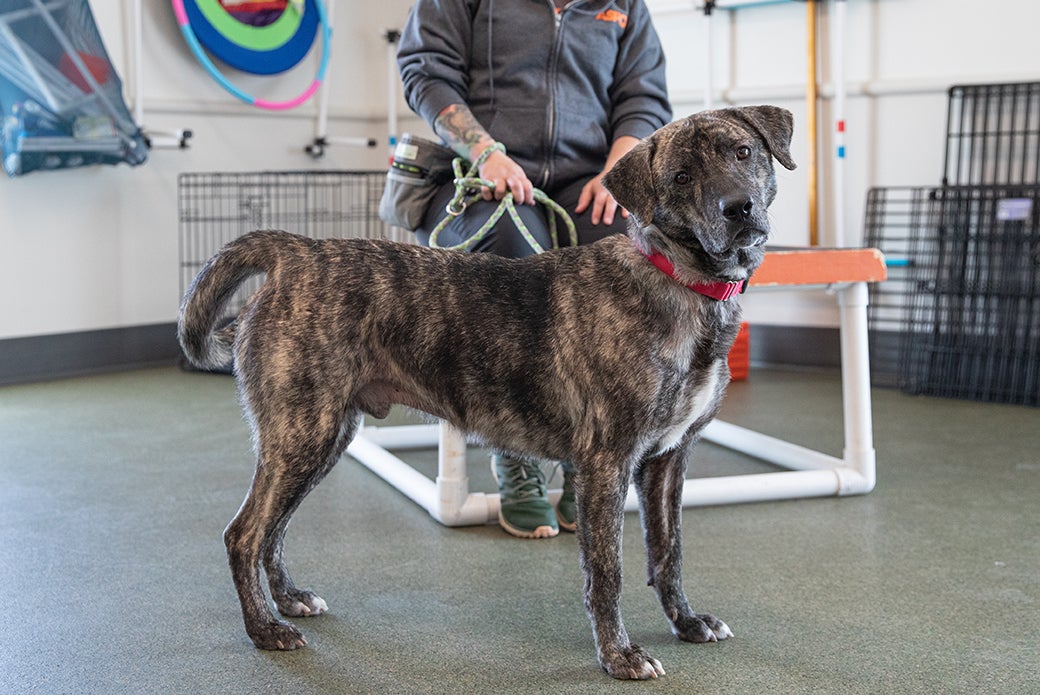 Big fan of: Petting—after he’s gotten the chance to get to know you, of course! You’ll get some great dance moves out of him as you give him butt scritches. Galloway loves to explore all that the world has to offer and he’d love to do it with you by his side. He also enjoys walks in the park and floppy toys that he can shake, shake, shake. He has the best time when he gets to play on our agility equipment.
