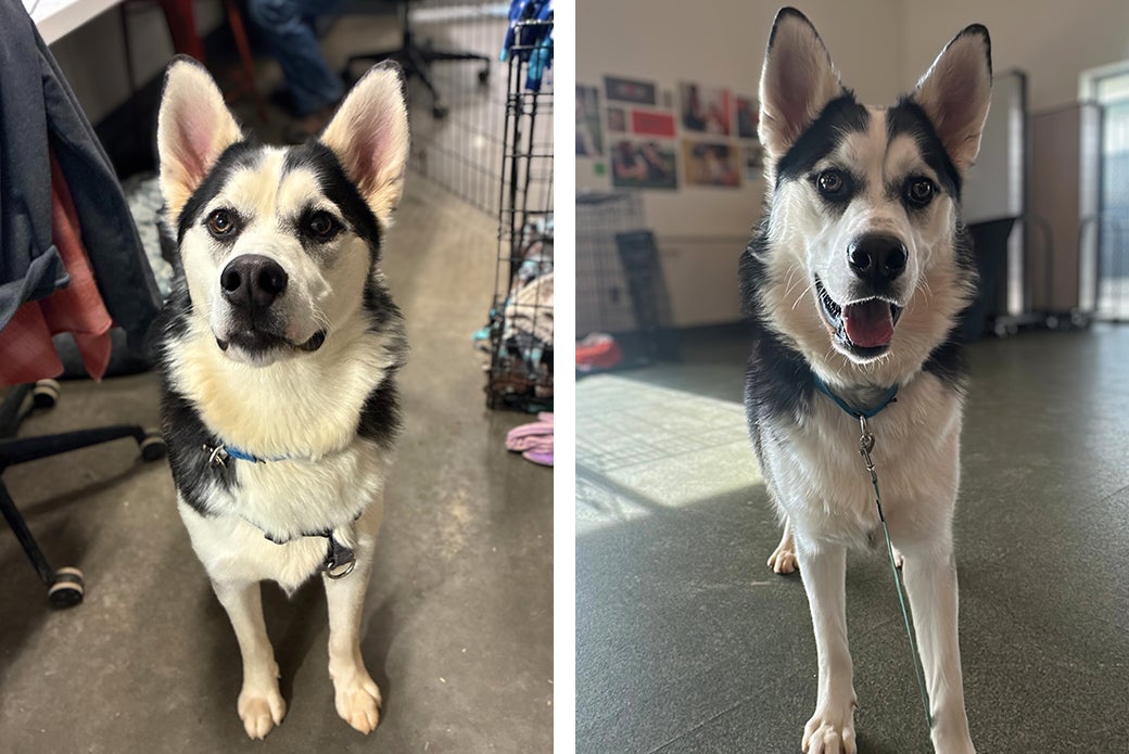 Once he knows you, Jay is affectionate, cuddly and full of sweet “you’re my person” energy. With new folks, he sometimes takes a moment to check them out first, but a slow approach and a tasty treat will help you become besties. After playtime, he settles in beautifully and enjoys relaxing, snacking and using that clever Husky brain for enrichment and games.