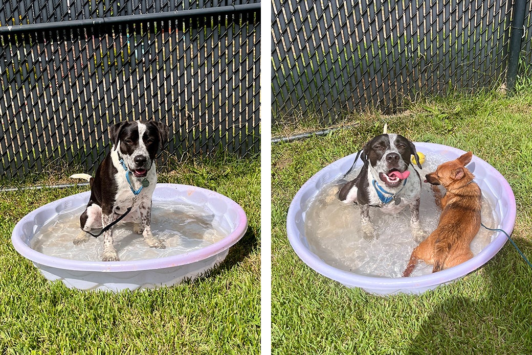 Big fan of: Playtime! Poppy loves to play with other dogs and humans alike. She loves toys and playing tug, and she is great about sharing her toys with friends! She would likely make a great companion for outdoor adventures, too. She enjoys hiking and running, but her favorite outdoor activity is swimming! Poppy has shown her love of water by happily jumping into creeks, puddles and even our kiddy pool!