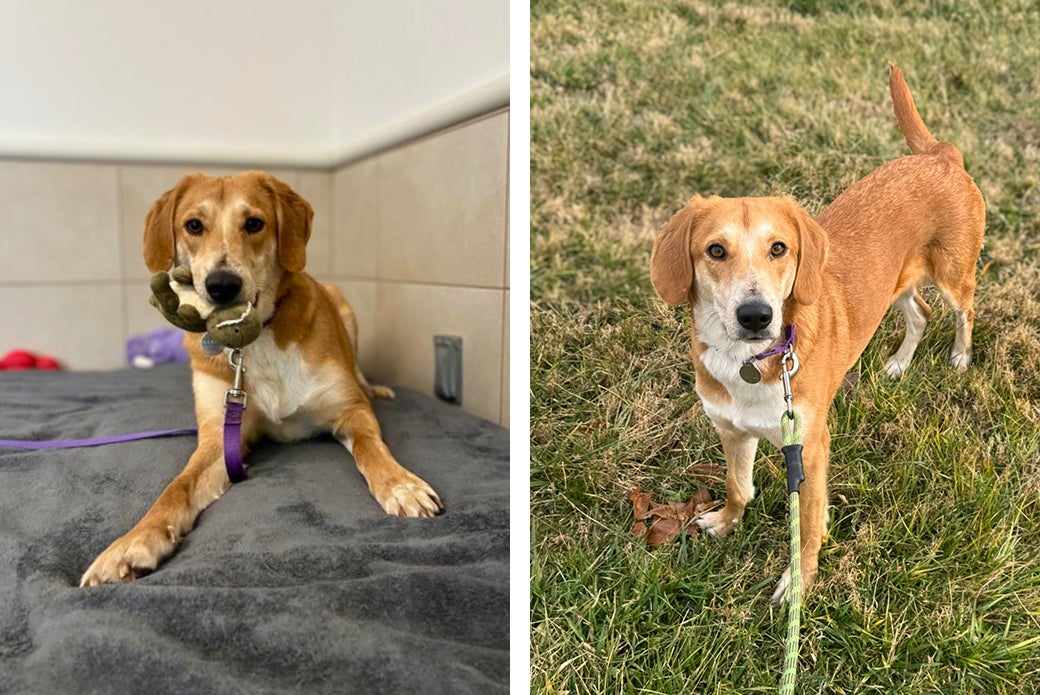 Once she feels comfortable, Truffle’s personality really shines. She greets her people with happy tail wags, playful bows and the occasional silly howl when she is feeling extra fun. She enjoys tossing around squeaky toys and will absolutely make you laugh with her playful moments. After some activity, she is happy to relax nearby and enjoy a quiet afternoon.
