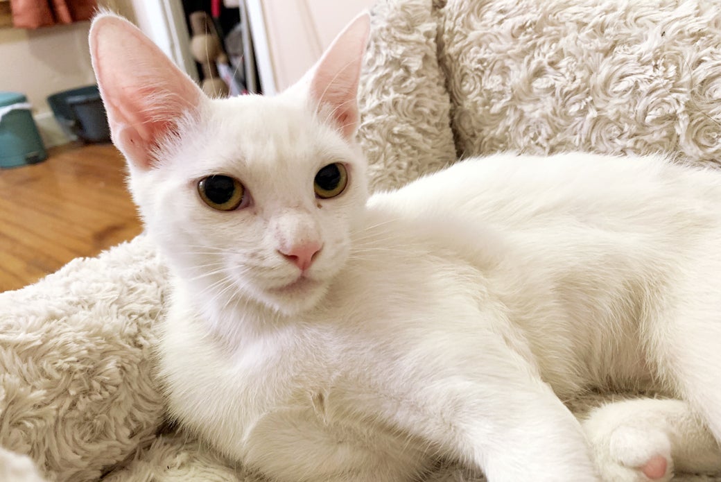 Betty will slowly become your best bud and will want to be next to you all the time! She likes to sit on your lap or lay on your chest while you're relaxing. Betty also enjoys cuddling with her foster family's gentle dog and gets along great with other cats including her sister, Dotty.