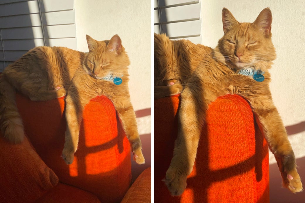 Orange you glad to meet Orange? Orange is a very calm and social guy. He can be independent, but enjoys getting belly rubs and being brushed, and tolerates having his nails trimmed. Orange likes chasing feather toys when he's in a playful mood, and will let you carry him around in your arms when he's feeling cuddly.