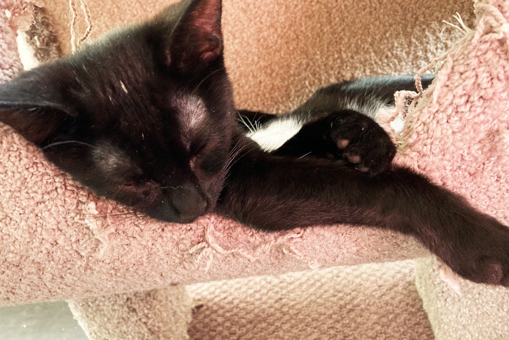 Since Pillow has done so well with her foster family’s adult cat and her bestie Moose, we believe she would do best in a home with another friendly cat to keep her company. If this sweet girl sounds like the perfect addition to your family, please fill out our online adoption survey.