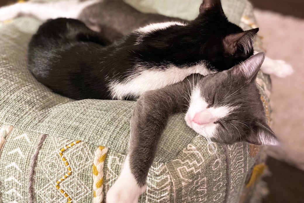 Spot absolutely adores other cats. She loves to cuddle up next to her foster family's cats or her sister, Feather. Spot feels safest with her cat buddies and will look to them for attention as she doesn’t like to be alone.