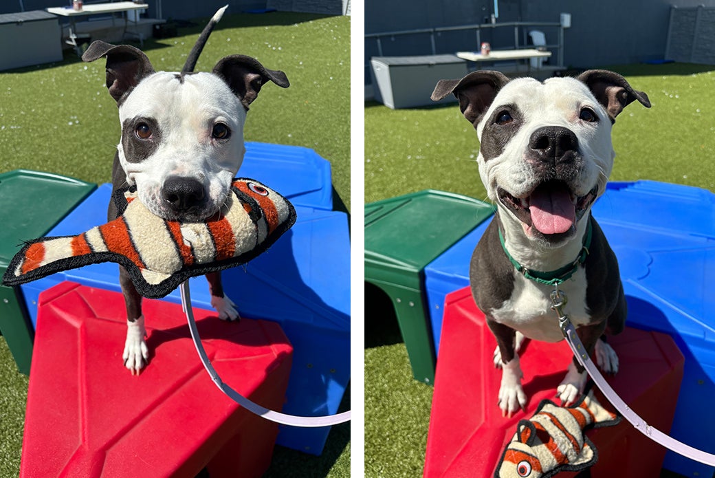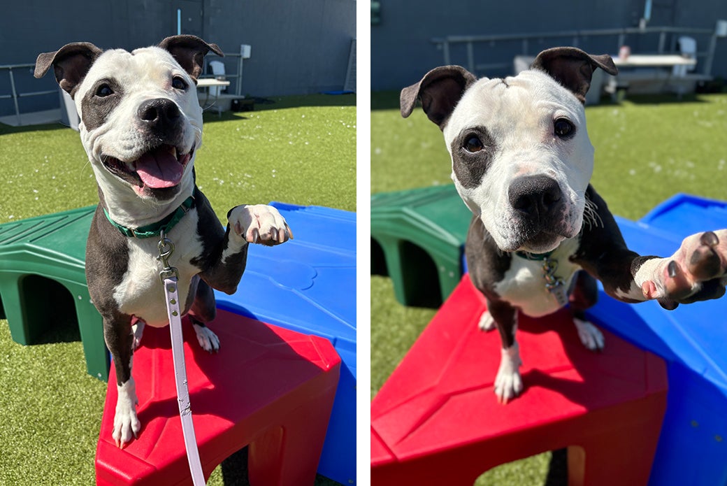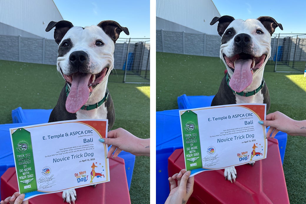 Bali is the kind of dog who gives her all in everything she does, whether it’s tug-of-war, fetch, cuddles or trick training. In fact, Bali just earned the official title of Novice Trick Dog! To accomplish that, she mastered 15 different tricks, such as sit, place, down, paw, wait, drop it and more — all while in a shelter environment. We’re so proud of this girl and can’t wait for her to show off her smarts to her new family!