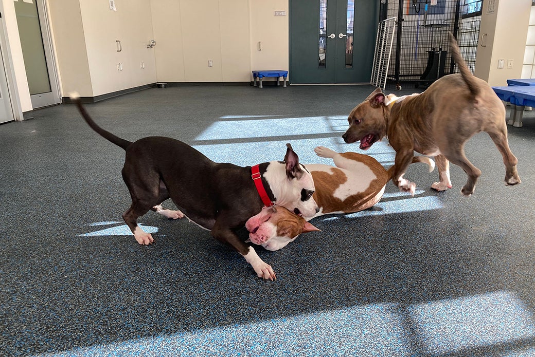 Bali also loves to play with other dogs and is a total star in our doggy playgroups! She enjoys rough-and-rowdy or chase-style play with her canine pals and is fantastic at reading their body language. She also helps teach puppies how to socialize thanks to how patient and playful she is with younger pups. Plus, she can called over easily during play, which shows the impulse control she's worked so hard to build.