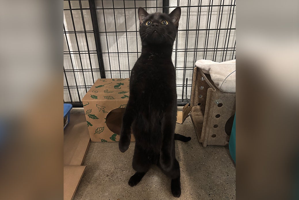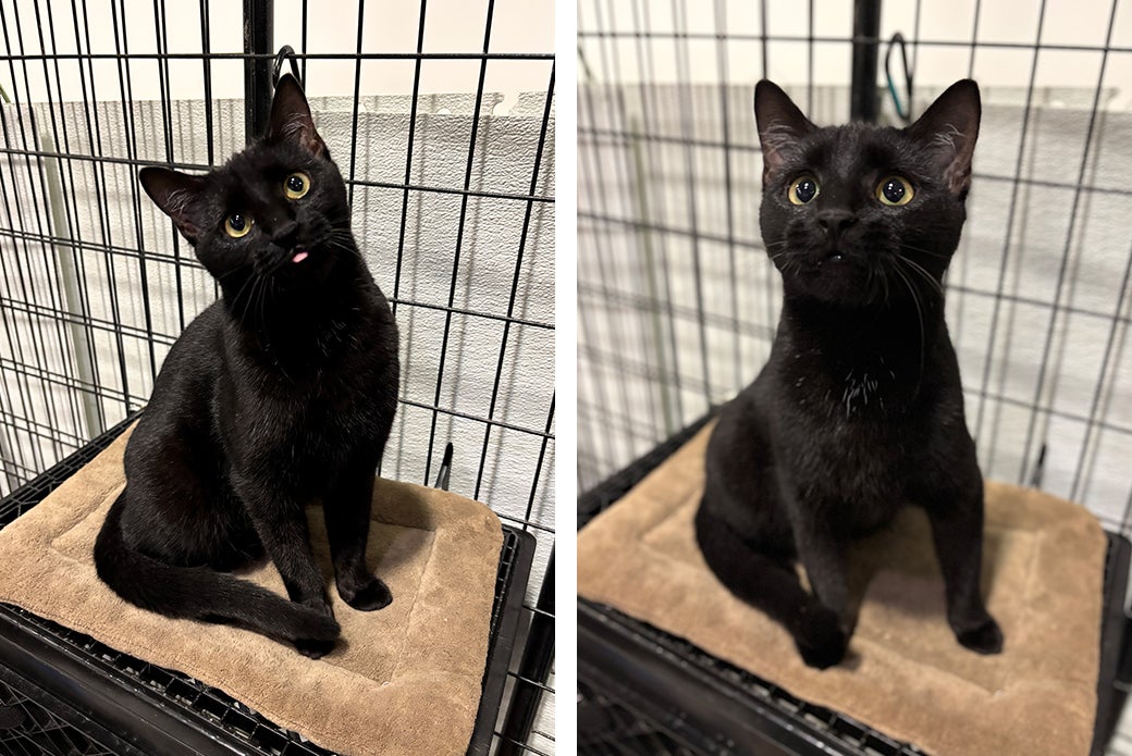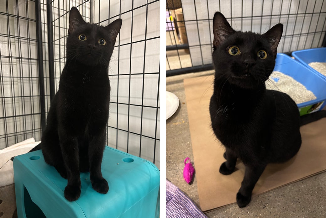 Meet Carrot! Carrot is a 3-year-old, black short-haired beauty with a big personality. She’s vocal and isn’t shy about asking for attention — get ready for plenty of leg rubs and sweet headbutts!