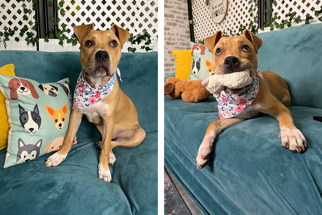 Egg is a playful young puppy who will thrive in a home that will help continue to build her confidence. Though she may bark at new people from a distance, she’s quick to warm up and turns into a wiggly, tail-wagging social butterfly once she’s up close. With continued socialization, some guidance and more real-world adventures, she will see that the world isn’t so scary after all. She’s sure to blossom into a happy, loving companion who is ready for any adventure that life brings!
