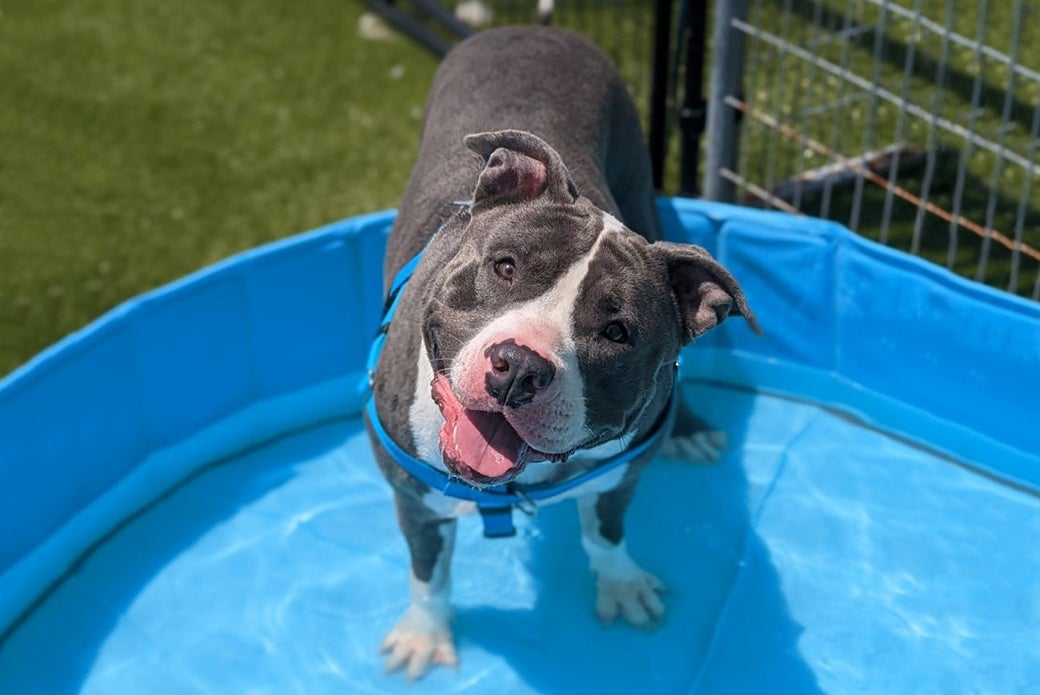Meet Minnie! Minnie is a beefy gal with the cutest little eyes, and of course, that big pittie smile. This sturdy girl is 71 lb. of fun! Minnie is an adventurous soul who loves meeting new people, riding in the car and exploring new places. She enjoys going up and down ramps, going through tunnels, splashing in baby pools and hopping up on platforms at the shelter play yard. She is brave, confident and friendly, making her the perfect travel buddy.