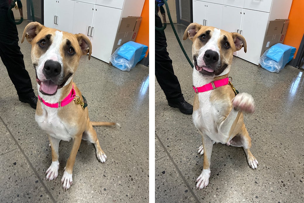 Rosa is a soft-hearted pup who absolutely loves people — whether you’re a familiar friend or a friendly face she’s meeting for the first time. She’s a total sweetheart who loves to lean in for full-body snuggles. When she’s especially happy, she will even show off her heart-melting tippy taps!