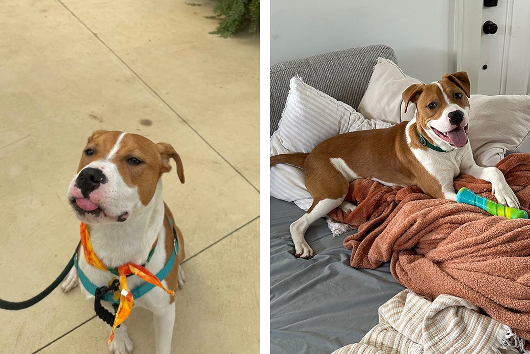 Warbler is a well-behaved boy and is as social as they come! He loves meeting new people, leans in for pets and is always up for attention. While in our doggy playgroups, he has done well with other dogs, playing chase and enjoying friendly wrestling. When he recently stayed at a foster home, he had the best time zooming around the backyard and lounging on the bed! Warbler has even been easygoing during medical check-ups.