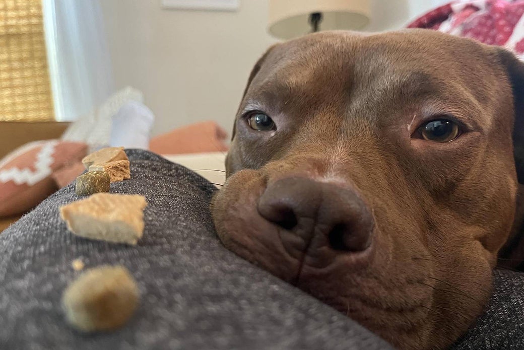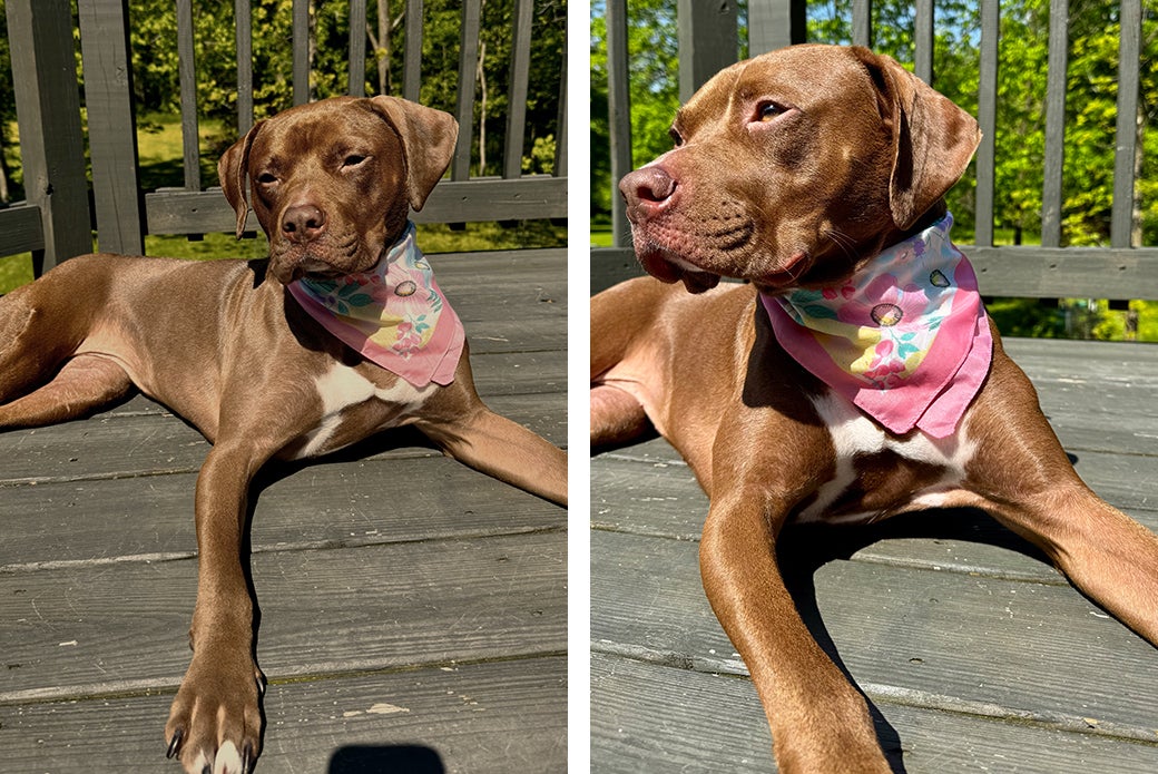 Waverly has a lot of playful energy, but also a calm, snuggly side. After a good walk or play session, she’s happiest curled up beside you on the couch, soaking up affection. Pets, cuddles and head rubs are always welcome. She’s also a big fan of relaxing outdoors and can often be found lounging in the sun, so she’d love to have a fenced-in yard to enjoy safely. Waverly also deserves bonus points for being housetrained, crate trained, and kid approved! She has met young children and done wonderfully, showing her gentle and adaptable nature.