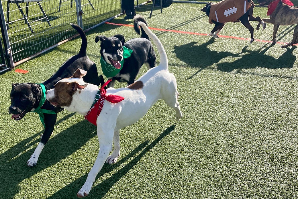 Yogi is a superstar in our doggy playgroups, where he has interacted well with a variety of other dogs. He is incredibly adaptable, adjusting his playstyle to match a new friend’s preferences. He also loves spending time with his people, even when it’s time for a training session. Yogi has an eager-to-please nature and loves showing off the skills that he’s learned!