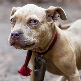 - Pit bull-mix-type dogs with multiple scars, possibly with lips or ears ripped off
