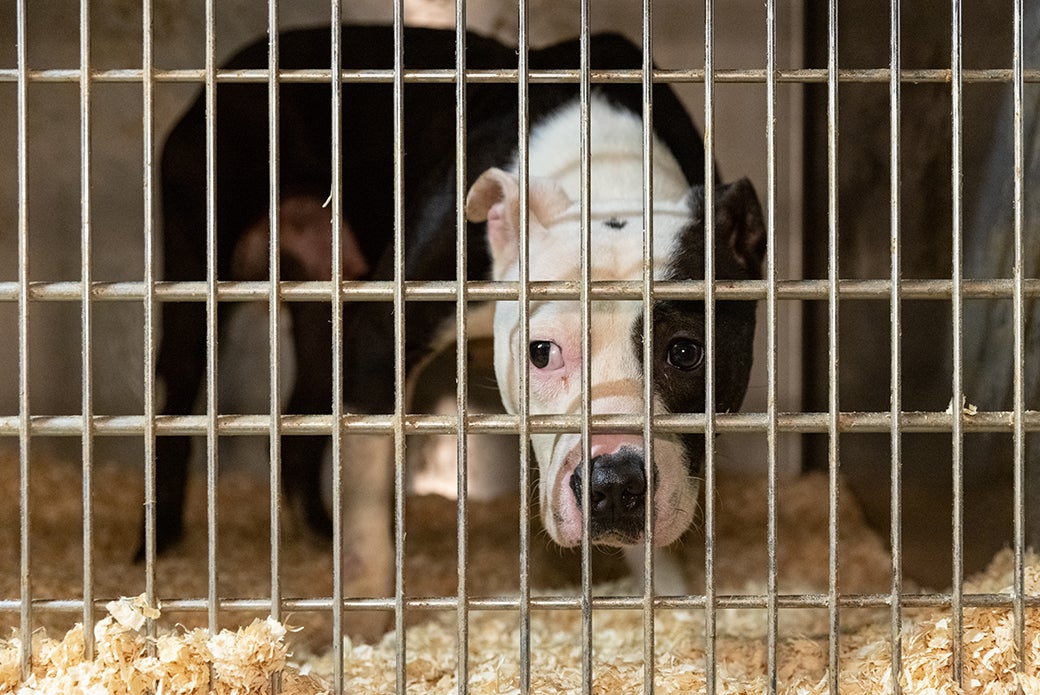 The ASPCA recently assisted with the removal of over 80 dogs rescued from an alleged dogfighting ring operating across Long Island, in New York City and in several other states. Alongside New York State Police, Suffolk County Police Department, NYPD, Nassau County District Attorney’s Office, Nassau County Police Department, and the Nassau County SPCA, Suffolk County District Attorney Timothy D. Sini announces the arrest of 10 individuals following the rescue of these dogs.