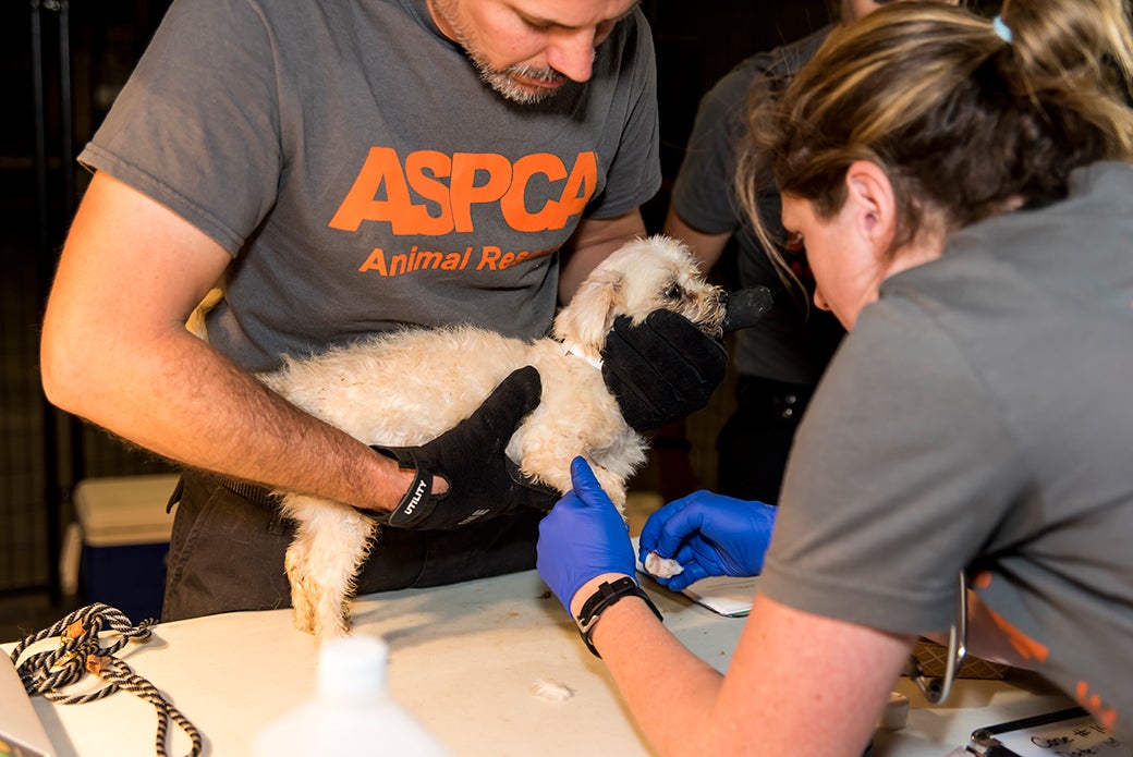 Large and small breed dogs, including Siberian Huskies, Chihuahuas and Poodles were saved from filthy living conditions during the November 16th rescue, and many were suffering from medical issues due to neglect. We transported all 100+ victims to a temporary shelter where they received medical care and behavioral enrichment from ASPCA responders, veterinarians and animal behaviorists.