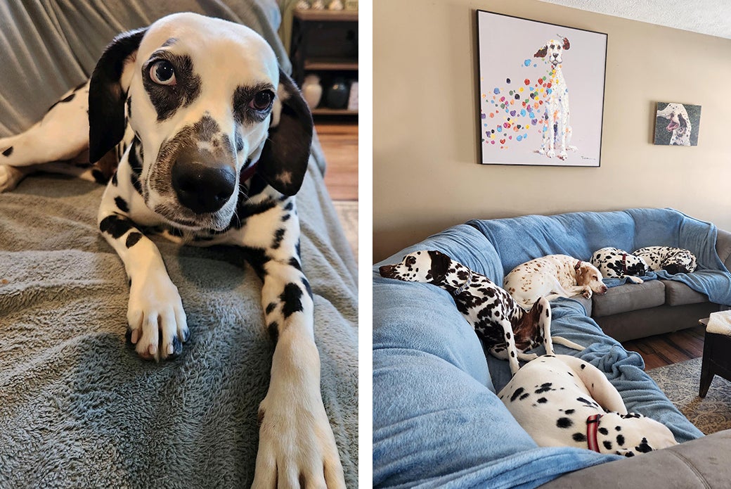 “Even though I’m not looking for more, I have friends who alert me to Dalmatians who need homes,” says Kelly, who recently adopted her seventh Dalmatian, Perdita, from the ASPCA Cruelty Recovery Center (CRC) in Columbus, Ohio.