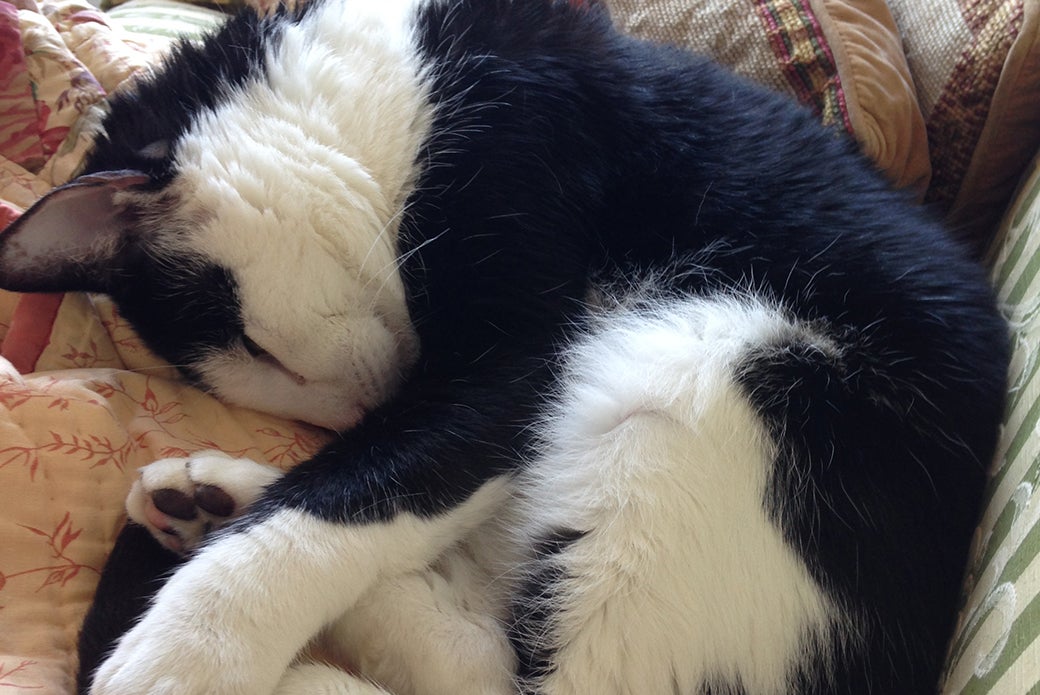 “I had been checking the ASPCA blog frequently and reading stories about all of these exceptional animals looking for their forever homes,” says Isabella. “Eventually, toward the end of June, I decided it was time to adopt.” At the ASPCA Adoption Center, Isabella spent two days meeting almost every available kitty, but she was having trouble choosing just one to be her new furry friend. When Hal started meowing suddenly, she asked an ASPCA volunteer about his history. “She told me Hal’s heartbreaking story, and afterwards I asked if I could offer him some treats,” she recalls. “As I opened his door, he started eagerly meowing again, and I knew that my home was now his home, too.”