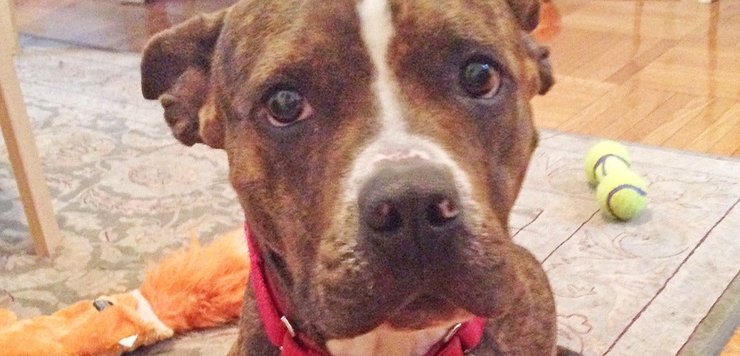 Although we treat victims of cruelty nearly every single day, Bea’s story is particularly heartbreaking. After being rescued in January, the two-year-old pit bull arrived at the ASPCA with a horrific head wound. She was extremely shy and very nervous around people, and it was apparent that she had suffered grave abuse. We vowed to find Bea a loving home where she could forget her previous pain, and fortunately, it wasn’t long before we did just that. Here is Bea’s Happy Tail.