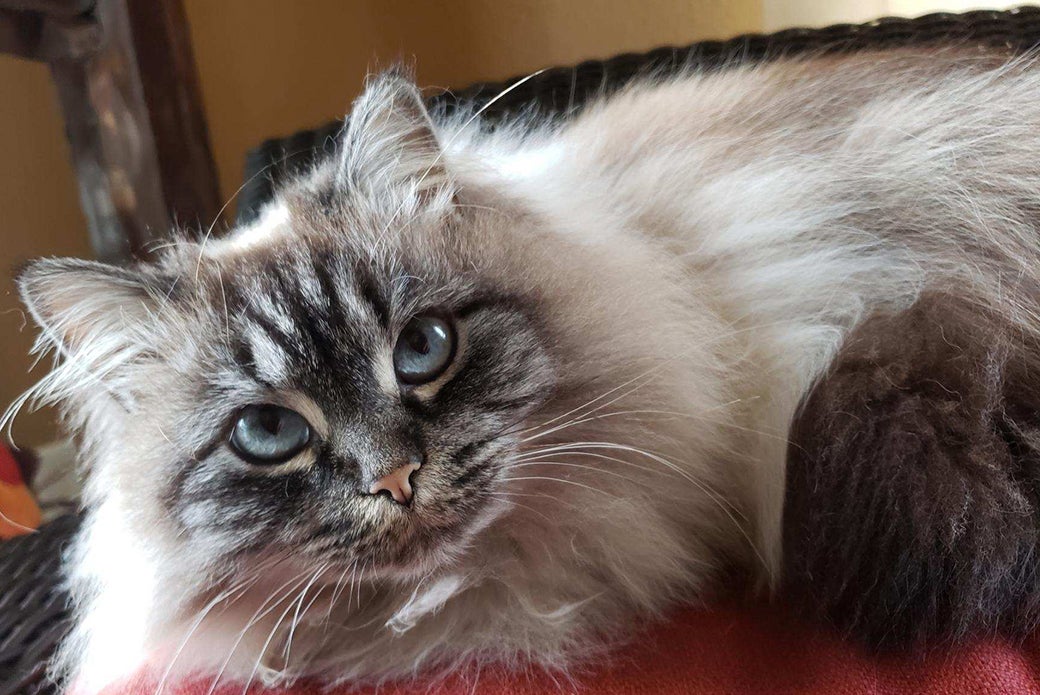 Lola, a visiting three-year-old Himalayan patient adopted from ASNA partner Furever Friends by Diana Pavlick, ASNA’s Manager of Facilities, Purchasing and Inventory.