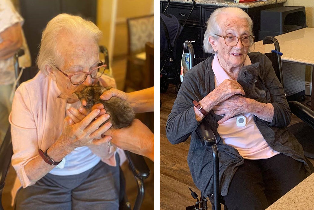 “Their faces really light up,” says Sheila, who has worked in senior living communities for 13 years. “Especially those in memory care. It brings back memories of their own cats and pets. When they hold them, the kittens purr. It’s really sweet.”