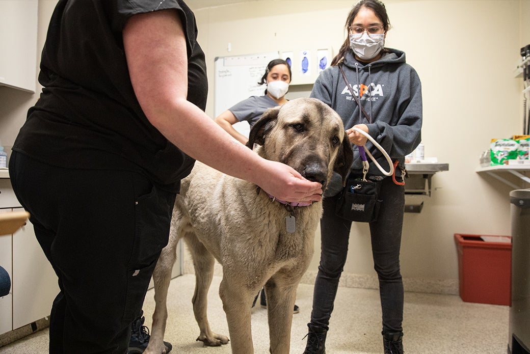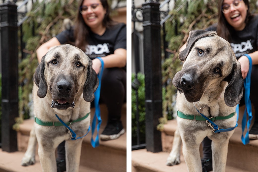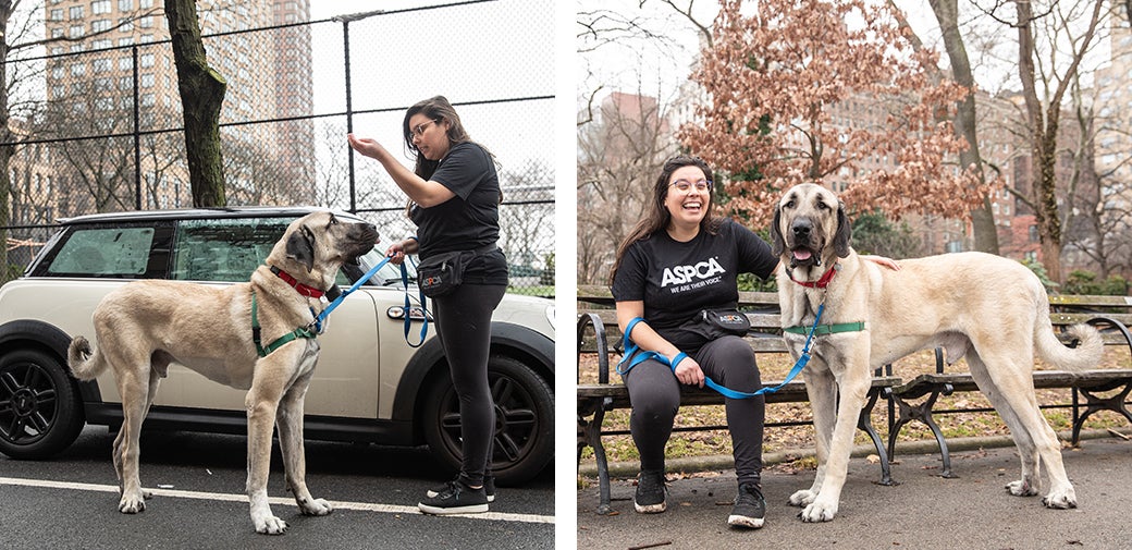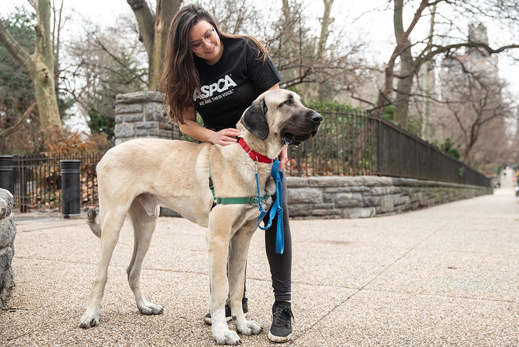 In April 2022, one of the biggest—if not the biggest—dog any ASPCA facility has ever seen walked through the doors of the ASPCA Adoption Center in New York City. Having just been rescued from deplorable conditions, Maggio, a 137 lb. Anatolian Shepherd, was quiet, timid and nervous about walking on a leash.