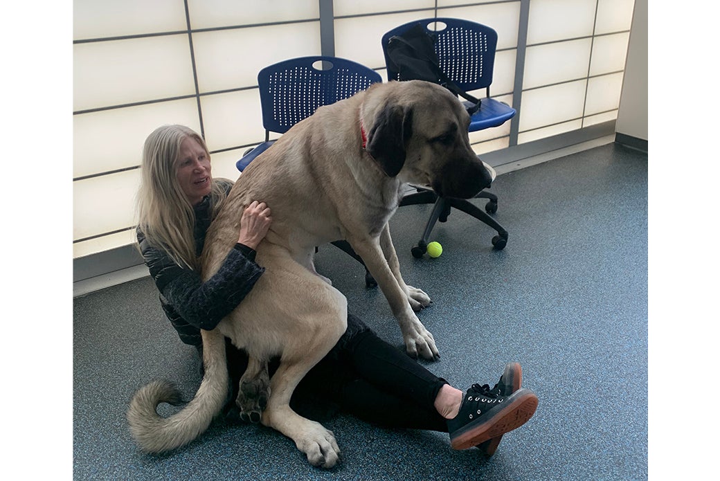 “Because he was so big, and you could tell the other dogs would get a little intimidated, he would always bow down to make himself a little smaller and they would realize he just wanted to play,” says Adi. “It was such a joy to watch him with other dogs. You’d just stare at him in awe of how big he is but realize he’s still a dog and, like all dogs, he just wanted to hang out with his people and chew on some toys and run around and play with other dogs. Watching him in playgroup was like watching a horse run back and forth, it was just amazing.”