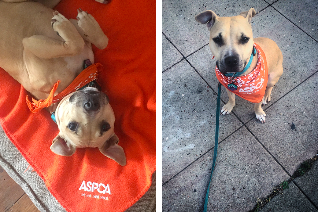 After treatment and recovery, Anthem was placed with ASPCA Partner Rescue, Even Chance in St. Louis, Missouri. By that point, Jessica felt bonded to sweet Anthem, and she knew that she couldn’t let her go. Jessica made the decision to follow the pup to St. Louis, and on January 31, 2018, they flew home to San Diego together. Shortly after, Anthem was spayed and the adoption was made official!