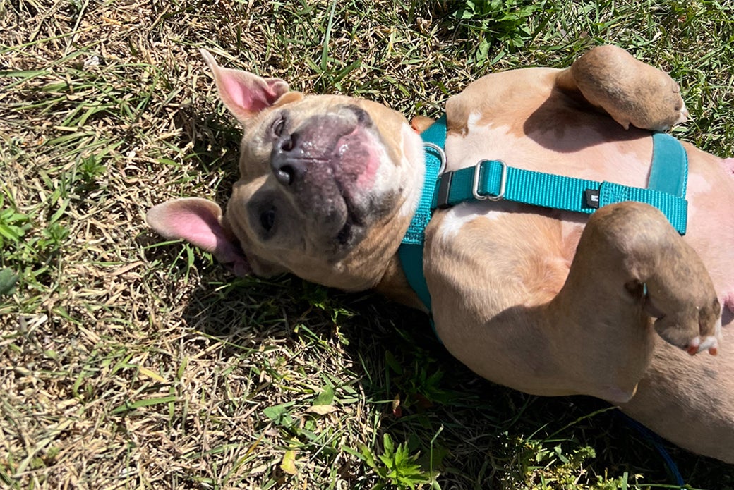 More than 40 of the dogs were transported to the ASPCA Cruelty Recovery Center in Ohio (CRC), where they received medical and behavioral support to prepare them for adoption. Among the animals was Dumplin, a heartworm-positive dog who arrived at the CRC in late March. Adam Whisman, Manager of Care and Enrichment at the CRC, remembers meeting the 40 lb. pooch for the first time.