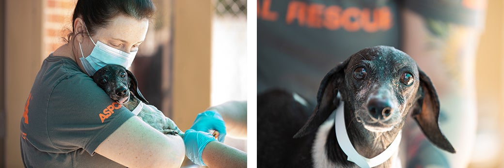 On November 10, the ASPCA removed Freckles and 40 other dogs from a west Texas property where they had been living in and around an overcrowded mobile home. Access to food and water was inadequate, and many of the dogs suffered from medical issues.