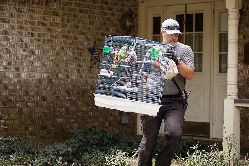 Homes are searched for pets who may have been left for up to a week, waiting for help to arrive.