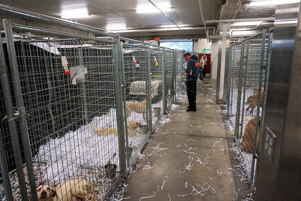 At the shelter, the dogs received clean bedding and spacious enclosures—many for what is likely the first time in their life.