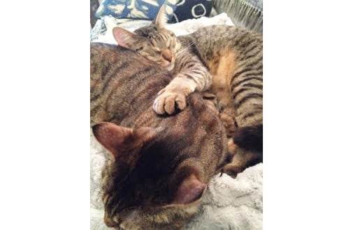 Sally swore that it would just be a quick visit, but her plans went out the window the moment she met Blair and Garrett. “I thought they were beautiful, friendly and sweet,” she says. “Having planned to just ‘look’ at adoptable cats that day, I somehow walked out with two!”