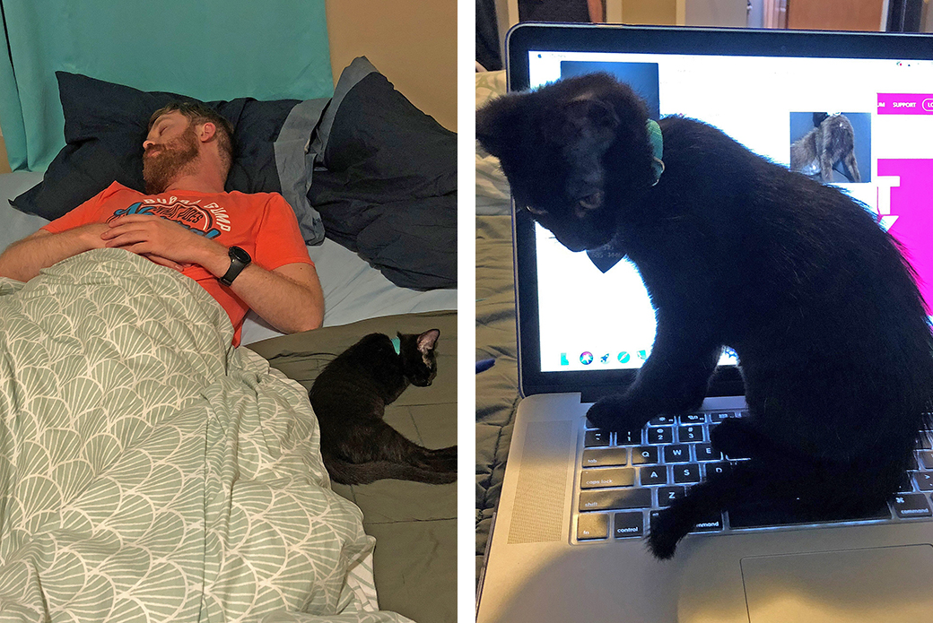 “She definitely loves us—even sleeps in our bed,” says Kurt, who got Piper a backpack carrier with a small window in it for trips to the vet. “She doesn’t mind being held and is very loyal. For example, she’ll wait outside the bathroom door until you come out. She’s a joy to have.”