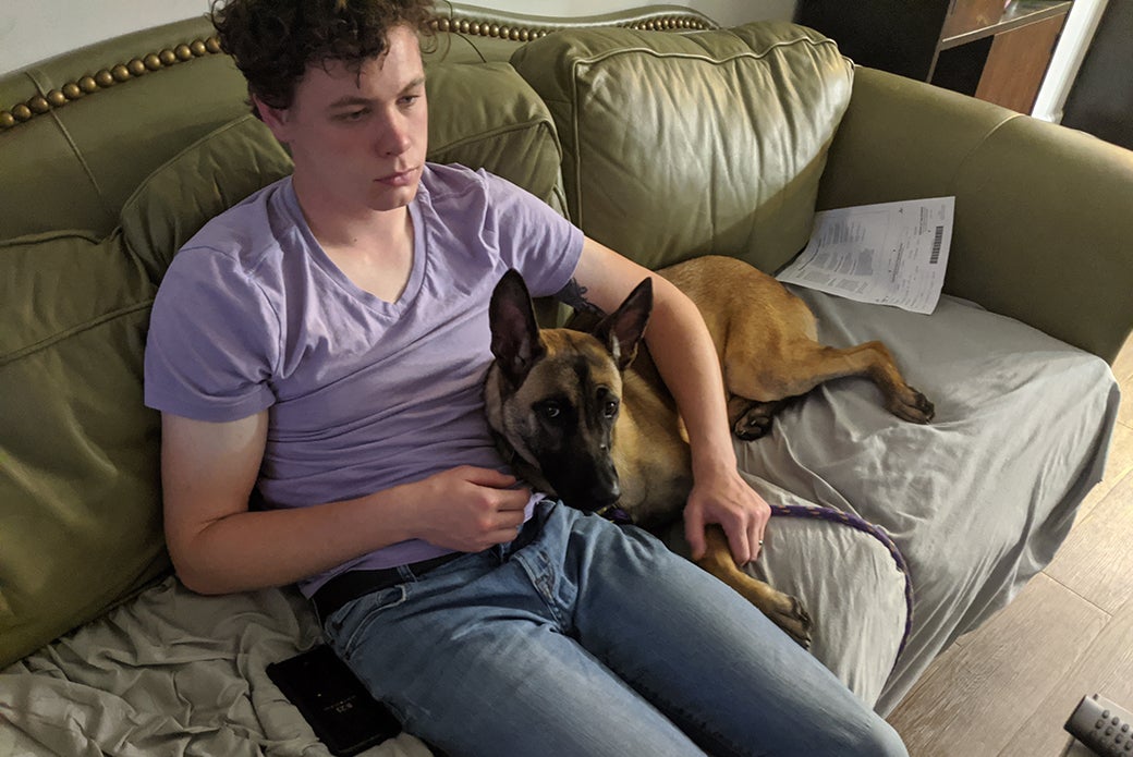 Olivia’s husband, Stephen, and their foster dog, Augusta.