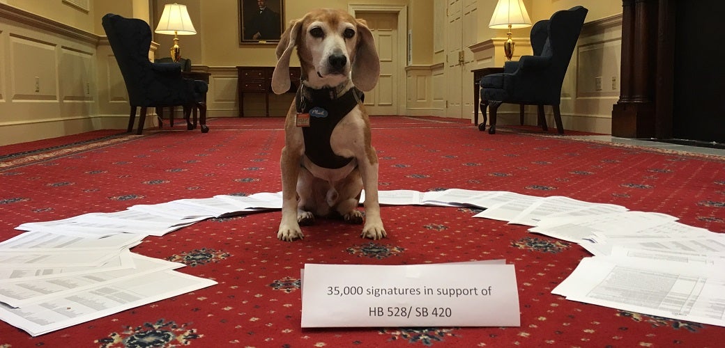 The bill must move by March 20 or it will be dead for the year. If you live in Maryland, please urge the General Assembly to pass S.B. 420/H.B. 528, the Beagle Bill.