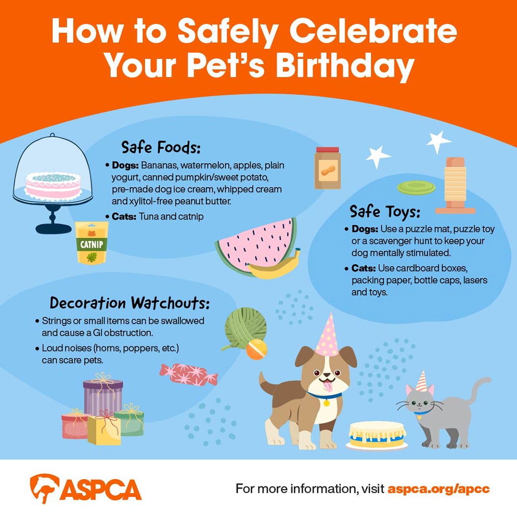 While celebrating your furry friend, be sure to keep their safety in mind. Here are a few tips from our experts at the ASPCA Animal Poison Control Center (APCC) on keeping your pet safe while celebrating their big day.