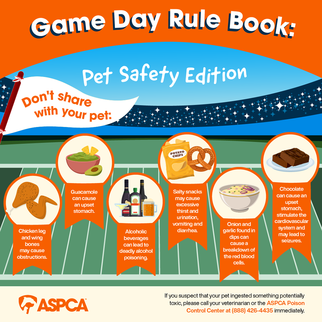 We’re just days away from the big game! You may know which team you’re rooting for, which party you’re going to and which snacks you’re bringing, but we want to make sure you’re prepared for everything — especially your pet’s safety. That’s why our experts at the ASPCA Animal Poison Control Center (APCC) created this list of do’s and don’ts to keep your pets safe on game day.