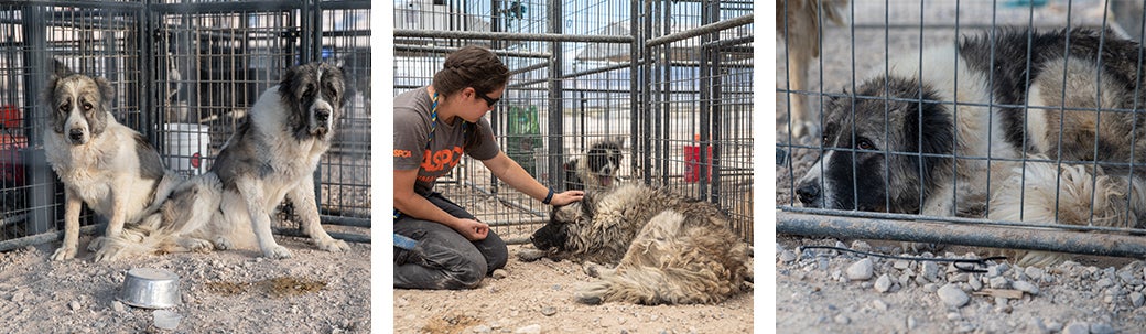 In September 2022, the ASPCA was on the ground in Pahrump, Nevada, providing much-needed assistance with the care of nearly 300 Caucasian Shepherd-type dogs rescued from alleged cruelty. As a large part of our response, our teams assisted in managing an emergency shelter where the dogs, including puppies and pregnant dogs, received forensic exams, medical care and behavioral support as needed.