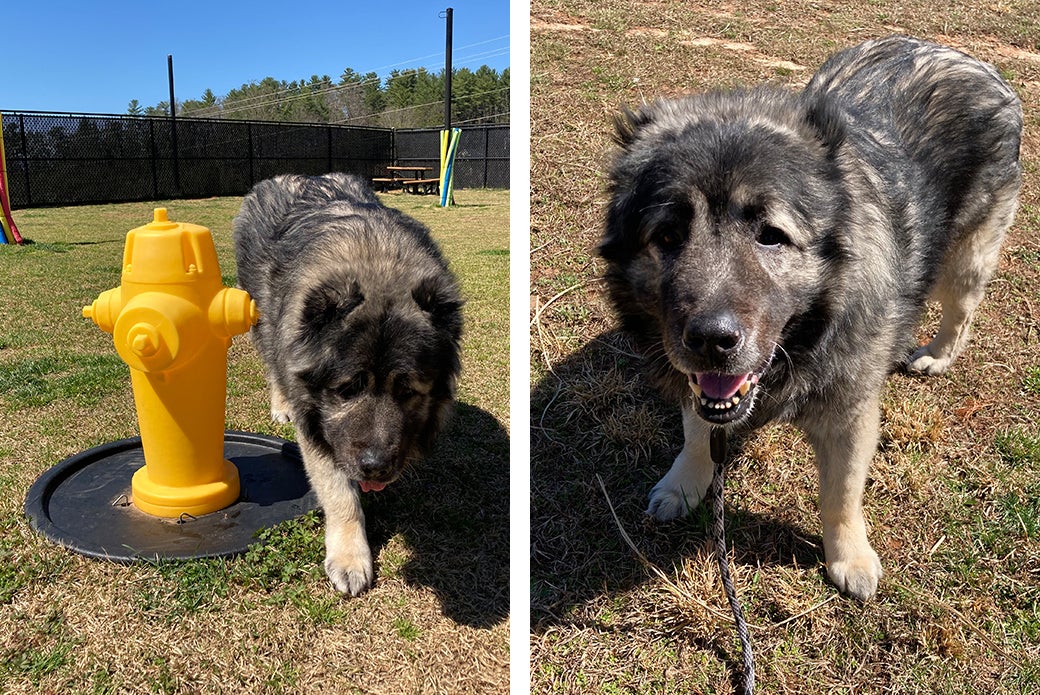 Due to his reactivity to other dogs, Hagrid worked alone so he could build a strong relationship with his human friends. Eventually, Lisa and her team began exposing him to other dogs from a long distance during his walks. After building up some confidence, Hagrid was able to interact with other dogs on leash and soon enough, progressed to being in a yard, off-leash with calm dogs.