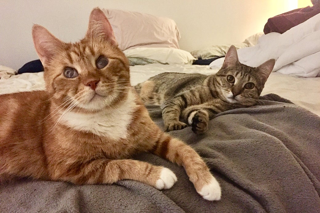 On April 21, 2017, the couple officially adopted the cats, whose personalities are totally different.