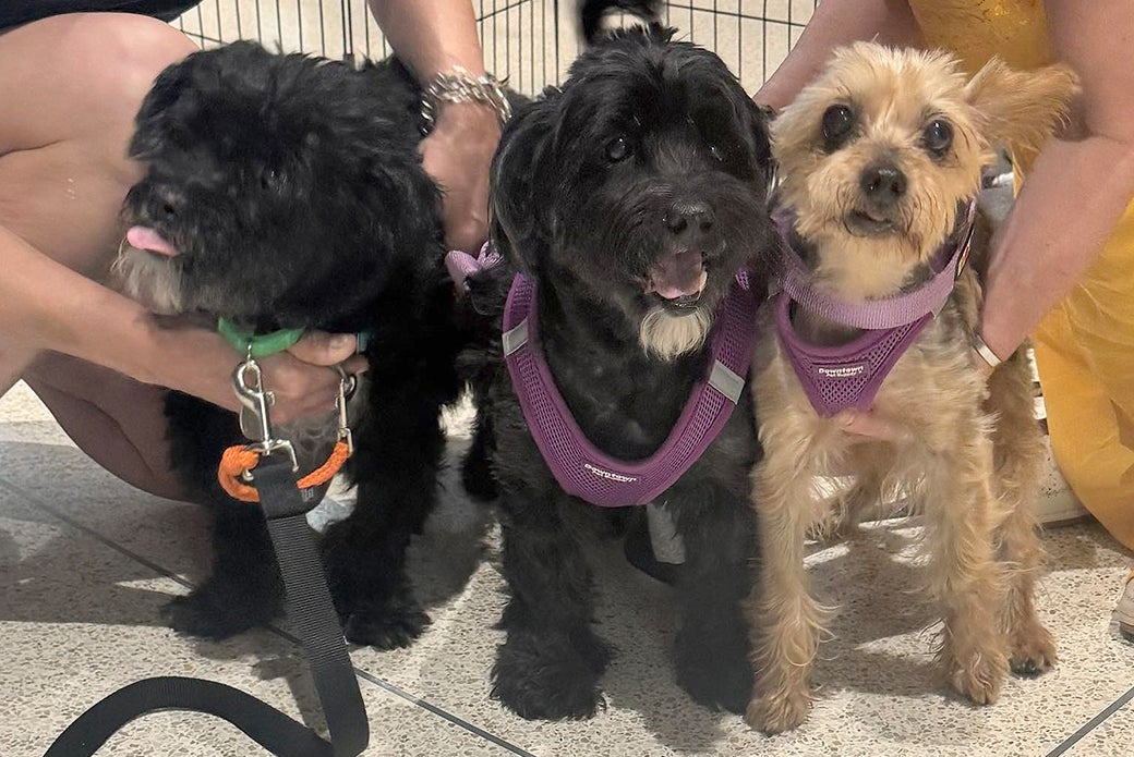 Mario and Luigi, left, and right, with Ziggy, at back, on his adoption day.