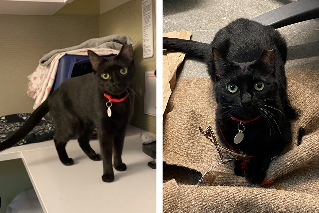 Larissa would eventually be tasked with caring for the young cats—named Ritz and Takis—who were housed in an office with plenty of places to hide. The goal was to get Ritz and Takis used to their new surroundings.