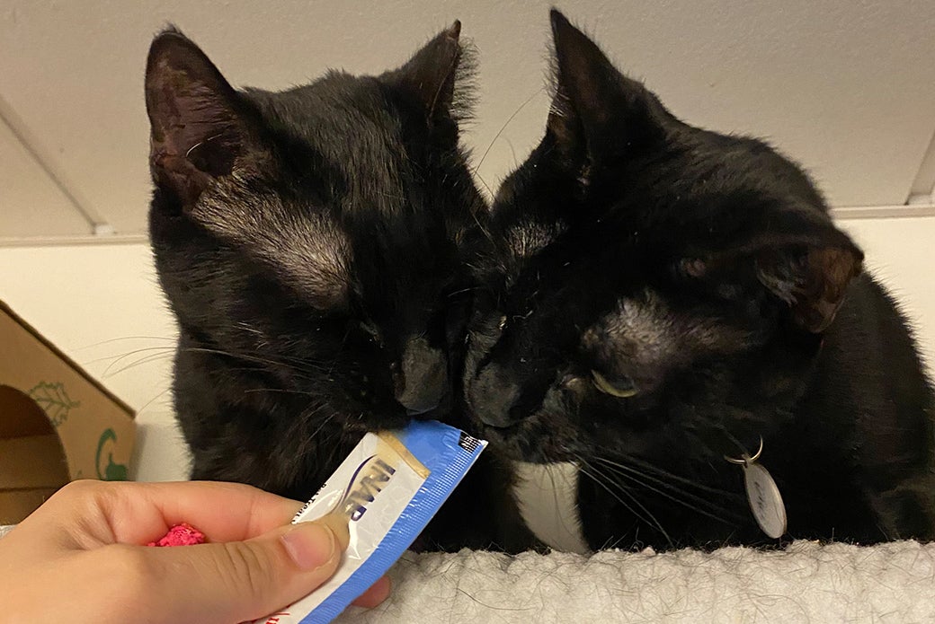 Another strong influence on both cats was Churu, puréed lick-able treats, donated via the ASPCA’s AmazonSmile Charity Wish List.