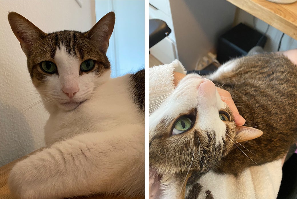 Meet gentle giant, Kinton! Though shy in a new environment, Kinton is the most calm, affectionate cat you’ll ever meet. Once he gets to know you, he’ll stick to you like glue, sitting on your desk watching you work and following you around the house—he especially likes to investigate what’s in the fridge.