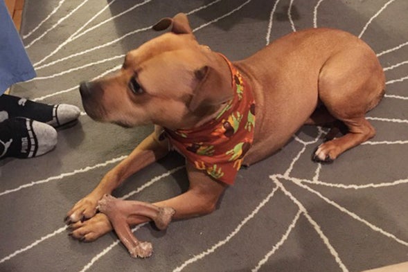 “After the first few nights, Stella was like a new dog,” says Kate. “She is so happy to be with her new family. Every day we wake up to her wagging her tail—she literally jumps into our laps and kisses our faces to say good morning.” Stella now handles the stairs with ease and eagerly awaits snuggle time with her family. “Every new experience is so exciting for her,” Kate marvels. “She loves getting new toys, bones, and lots of hugs. She is such a sweet dog, and by far the best decision we have made. We are extremely happy with Stella.”