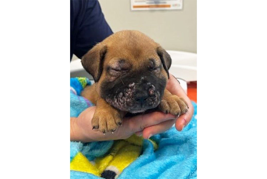 Puppy strangles usually affects puppies between one and six months of age. The first sign is acute swelling of the face and muzzle, which Dior experienced. The swelling is typically followed by the development of raised bumps and pustules on the animal’s face, muzzle and ears, which can spread to other parts of the body if not treated.
