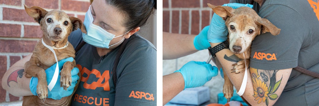 To ease her suffering, ASPCA vets put Lucy on antibiotics and pain medication. Staff provided medicated baths to help soothe her irritated skin and trimmed her painful toenails. She underwent a dental procedure with 11 teeth extractions at Appalachian Animal Hospital.